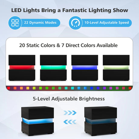 Bedside Table LED Nightstand with 2 Drawers-Black
