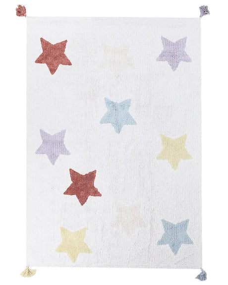 Kids Rug Off-White Cotton 120 cm with Star Motif Beliani