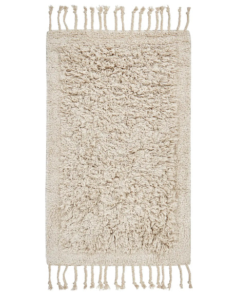 Area Rug Beige and Yellow Cotton Dots Pattern 140 x 200 cm Low Pile for Children Playroom Beliani