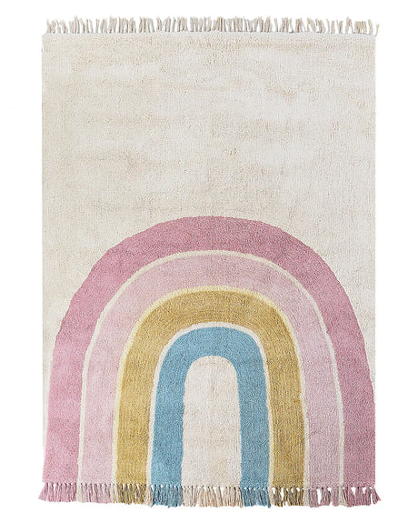 Area Rug Beige and Pink Cotton Rainbow Pattern 140 x 200 cm Low Pile for Children Playroom Beliani