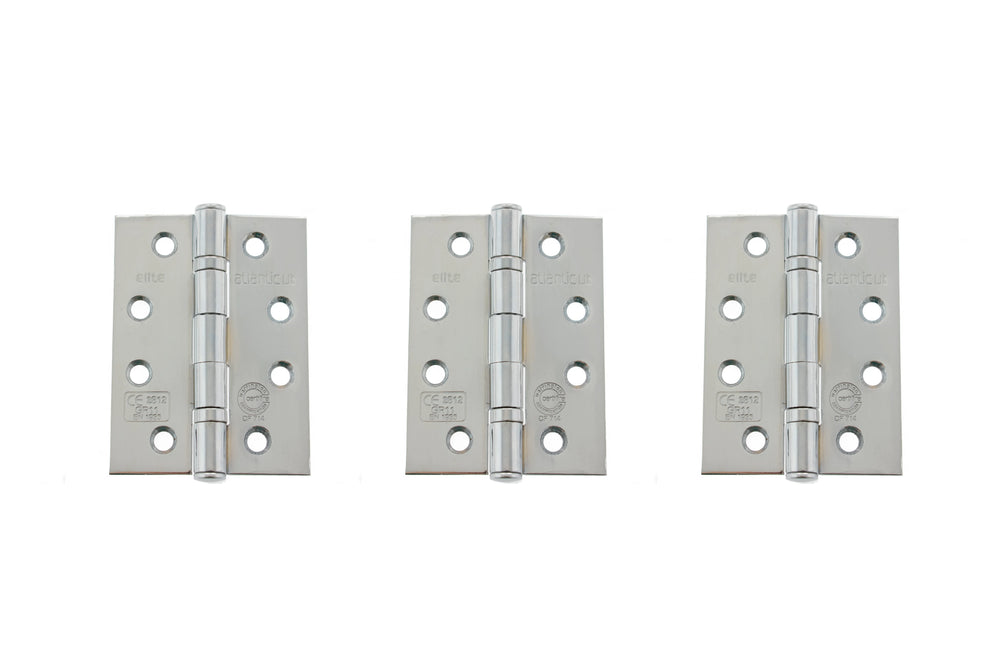 Atlantic Ball Bearing Hinges Grade 11 Fire Rated 4" x 3" x 2.5mm set of 3 - Polished Chrome - Set of 3