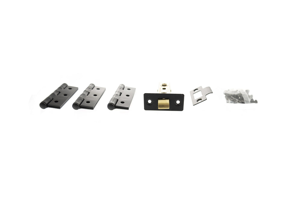 Atlantic Latch Pack [CE] 3" (Latch x1) + 3"x2" (Hinge x3) - Matt Black - Each is backordered and will ship as soon as it is back in stock.