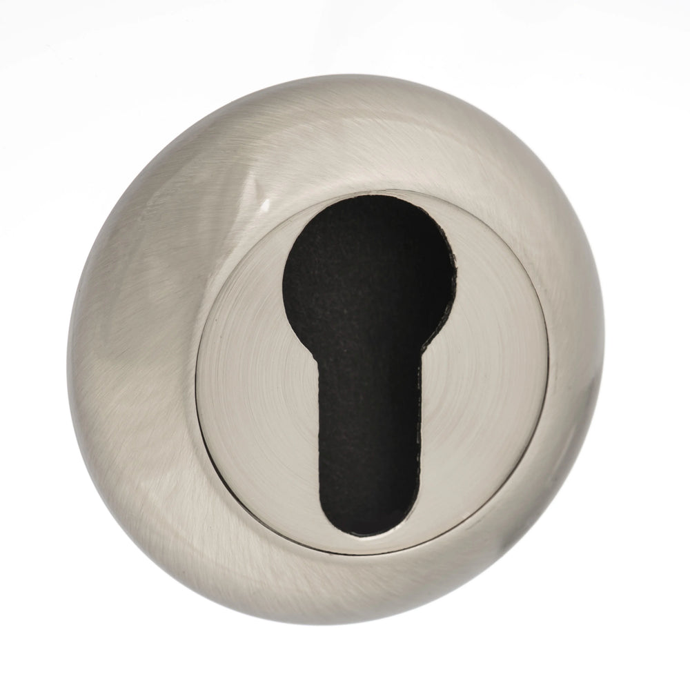 Mediterranean Euro Escutcheons on Round "C" Rose - Satin Nickel - Pair is backordered and will ship as soon as it is back in stock.