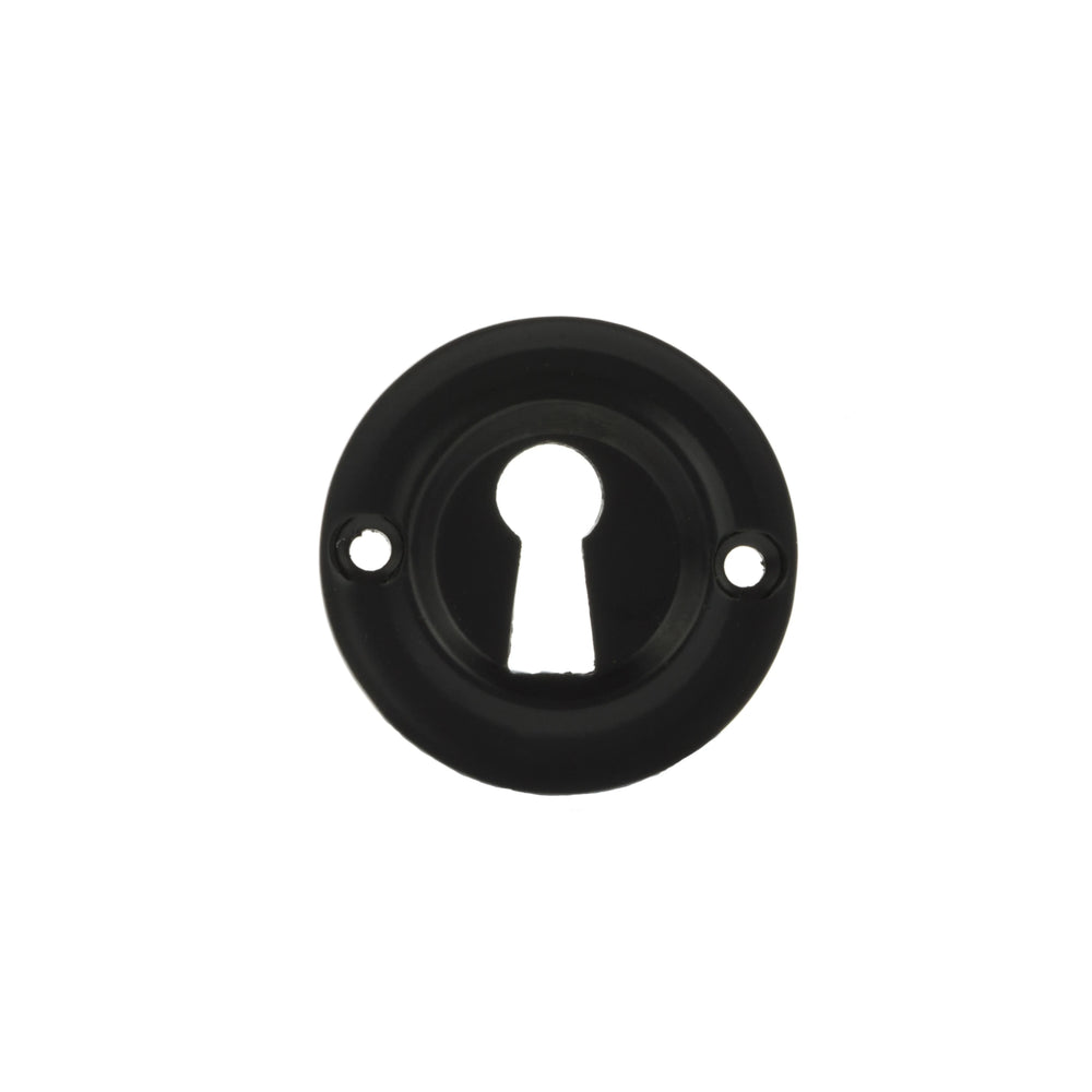 Old English Solid Brass Open Key Hole Escutcheons - Matt Black - Pair
