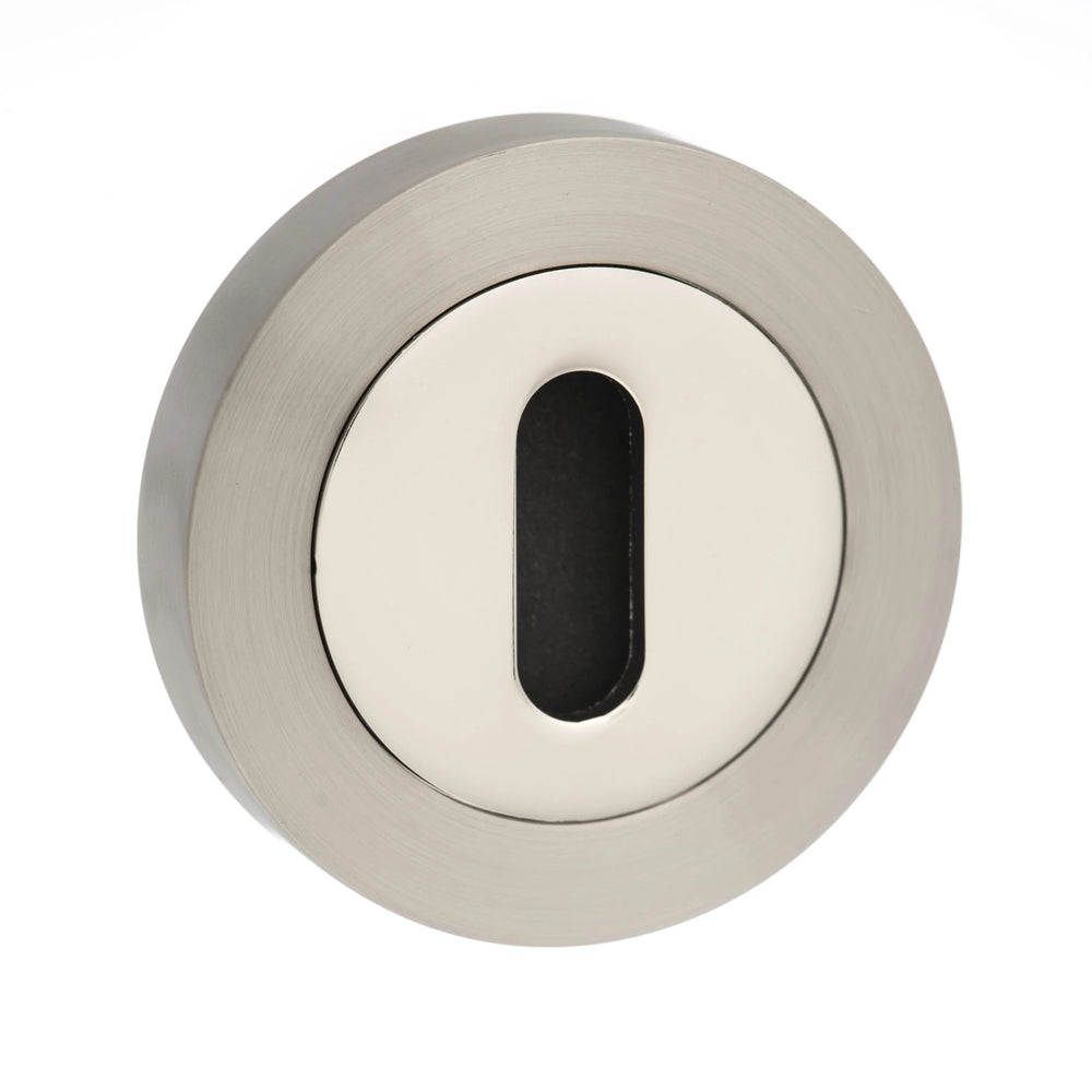 Senza Pari Key Escutcheons on Round Rose - Satin Nickel/Nickel Plate - Pair