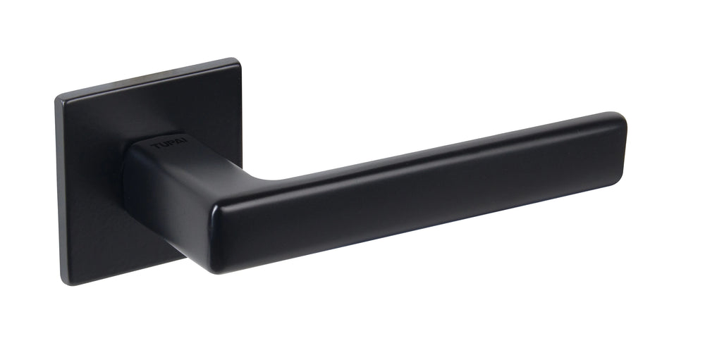 Tupai Rapido 5S Line Portel Lever Door Handle on 5mm Slimline Square Rose - Pearl Black - Set is backordered and will ship as soon as it is back in stock.