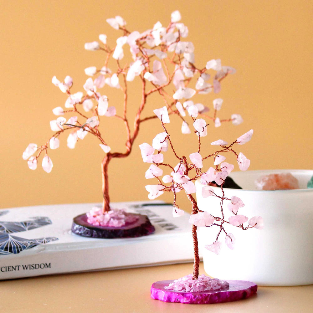 Rose Quartz Radiance: Adorned with 35 glistening rose quartz gemstones, each tree exudes the gentle, loving energy for which this stone is cherished.