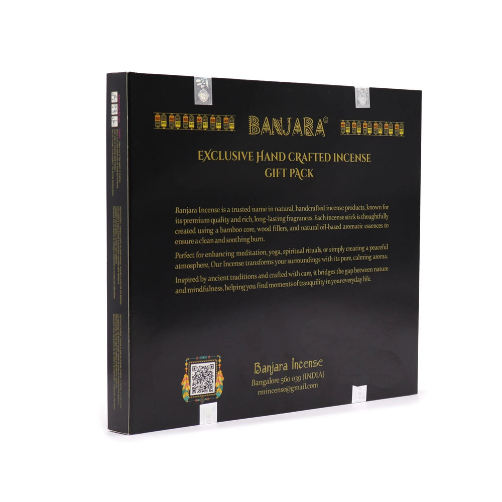 Discover six unique fragrances in one beautifully presented box. Handmade in India, this incense set is perfect for meditation, relaxation, and creating a serene, spiritual atmosphere at home.