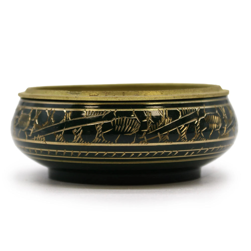 Charcoal Incense Jar in beautiful green colour. Decorated with golden patterns, handmade in India. This incense jar can be used during rituals for purification or activation of the Heart chakra.