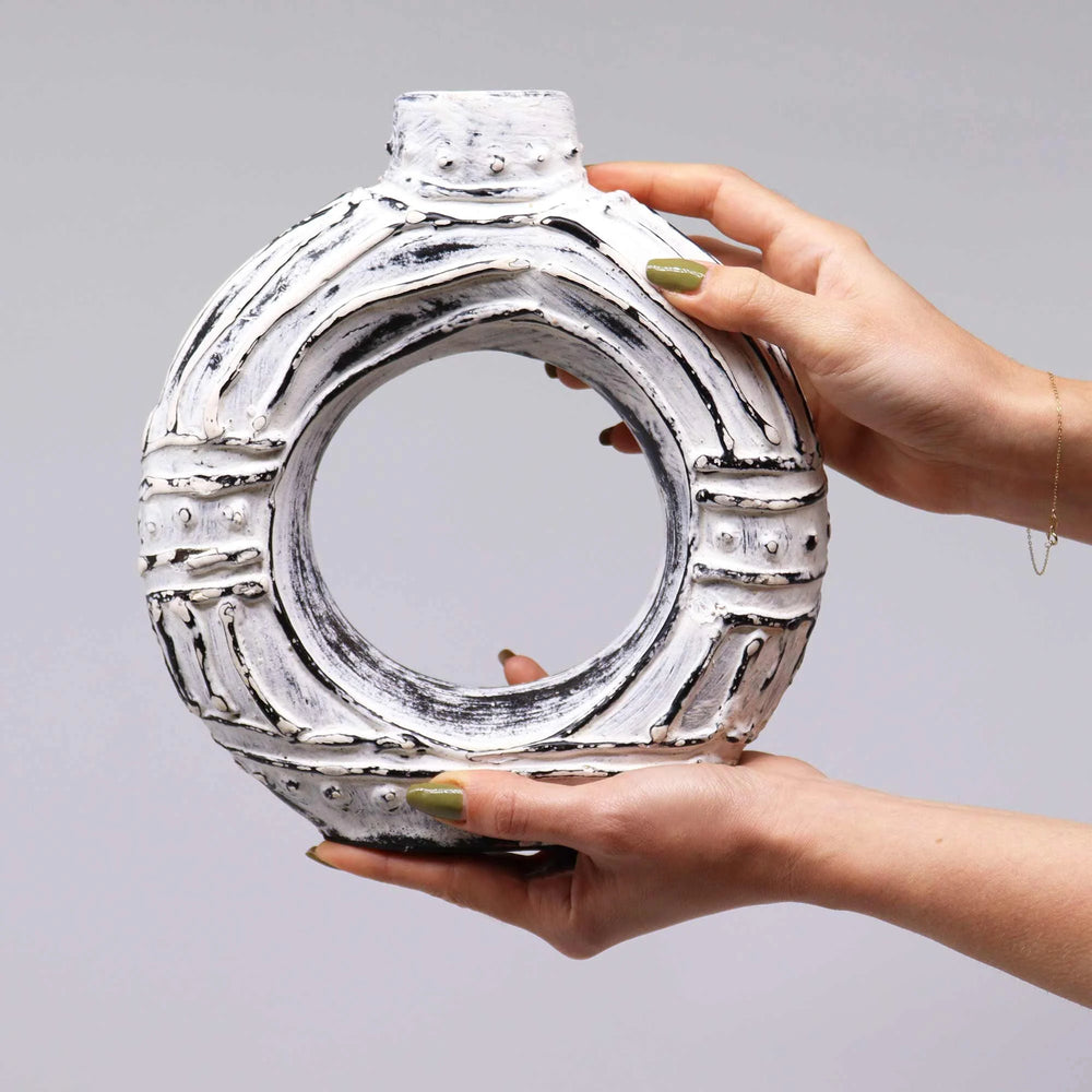 Round Donut Shaped Vase - Cream 23cm