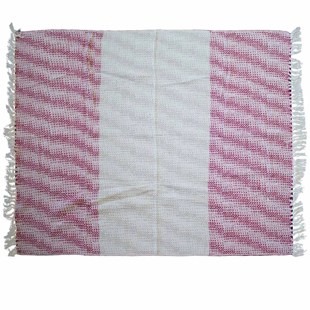 A 125x150cm cotton throw with a striking ruby red two-tone weave and cream tassel fringe. Soft, breathable, and stylish, it adds instant warmth and colour to any room.