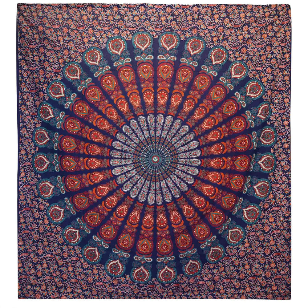 Double Cotton Bedspread + Wall Hanging - Peacock Mandala - Blue is backordered and will ship as soon as it is back in stock.