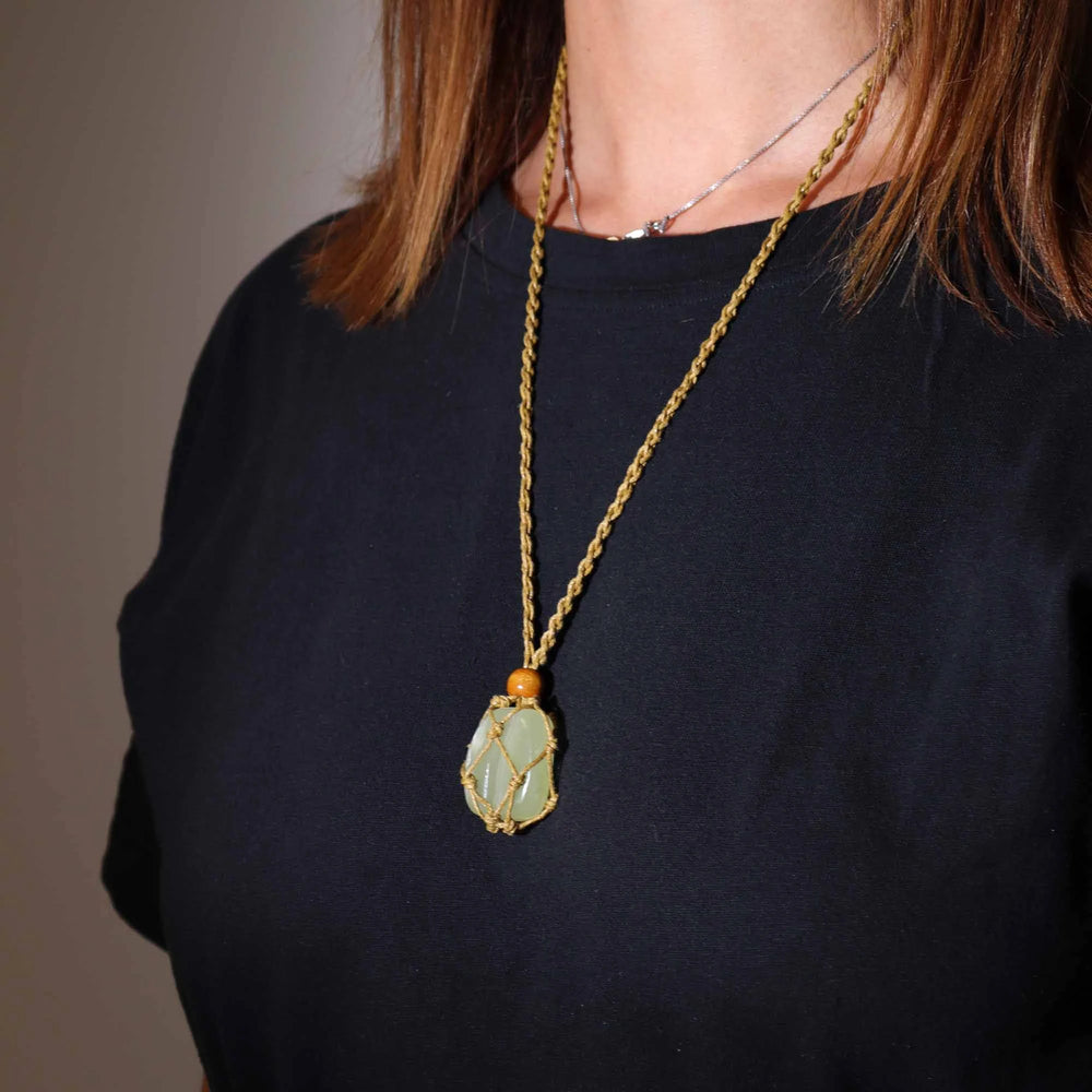 This sand necklace cord offers a versatile and natural foundation for your customers' jewellery designs. The adjustable length ensures a perfect fit for any wearer, accommodating various necklines and personal preferences. The cord's neutral sand hue complements a wide range of gemstone colours, from vibrant to muted. The intricate macrame wrap securely holds the gemstone, showcasing its beauty and allowing for easy customization.