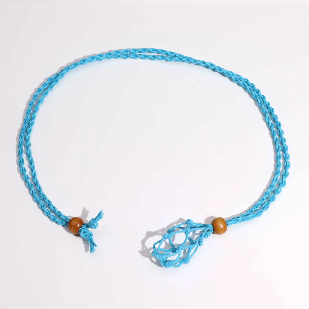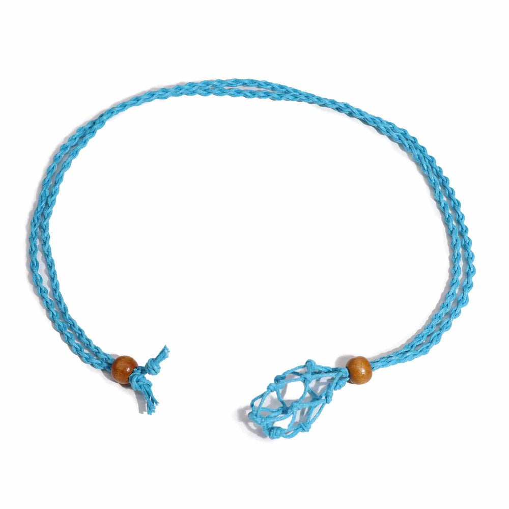 This blue necklace cord is a versatile and stylish option for your customers' jewellery designs. The adjustable length ensures a perfect fit for any wearer, accommodating various necklines and personal preferences. The cord's vibrant blue hue complements a wide range of gemstone colours, from vibrant to muted. The intricate macrame netting securely holds the crystal, creating a unique and eye-catching display.