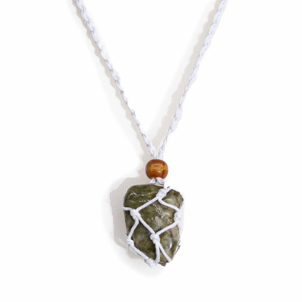 This white necklace cord offers a versatile and elegant foundation for your customers' jewellery designs. The adjustable length ensures a perfect fit for any wearer, accommodating various necklines and personal preferences. The cord's pure white hue complements a wide range of gemstone colours, from vibrant to muted. The intricate macrame netting securely holds the crystal, creating a unique and eye-catching display, as seen in the image.