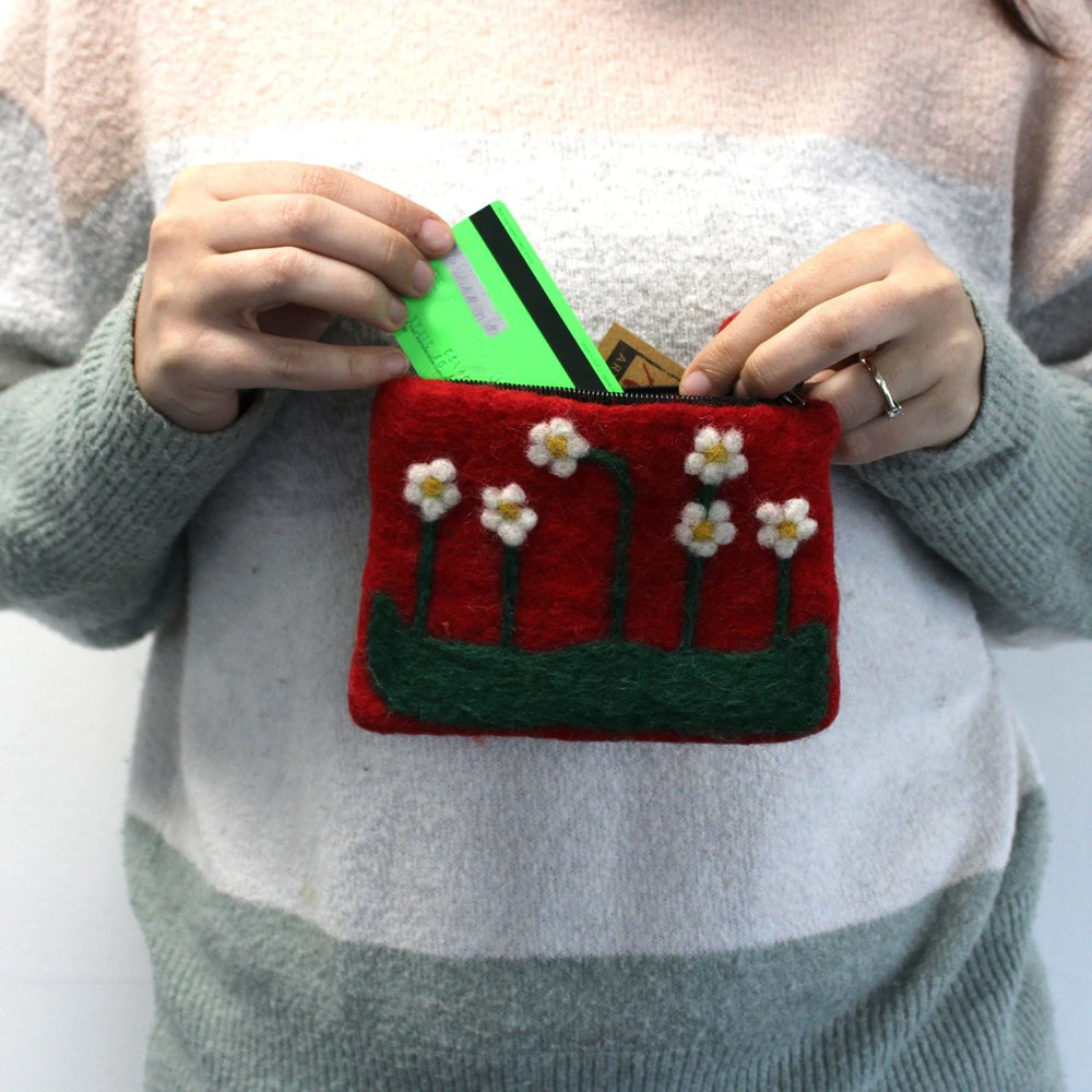 Natural Felt Zipper Pouch (asst) - Flower Garden