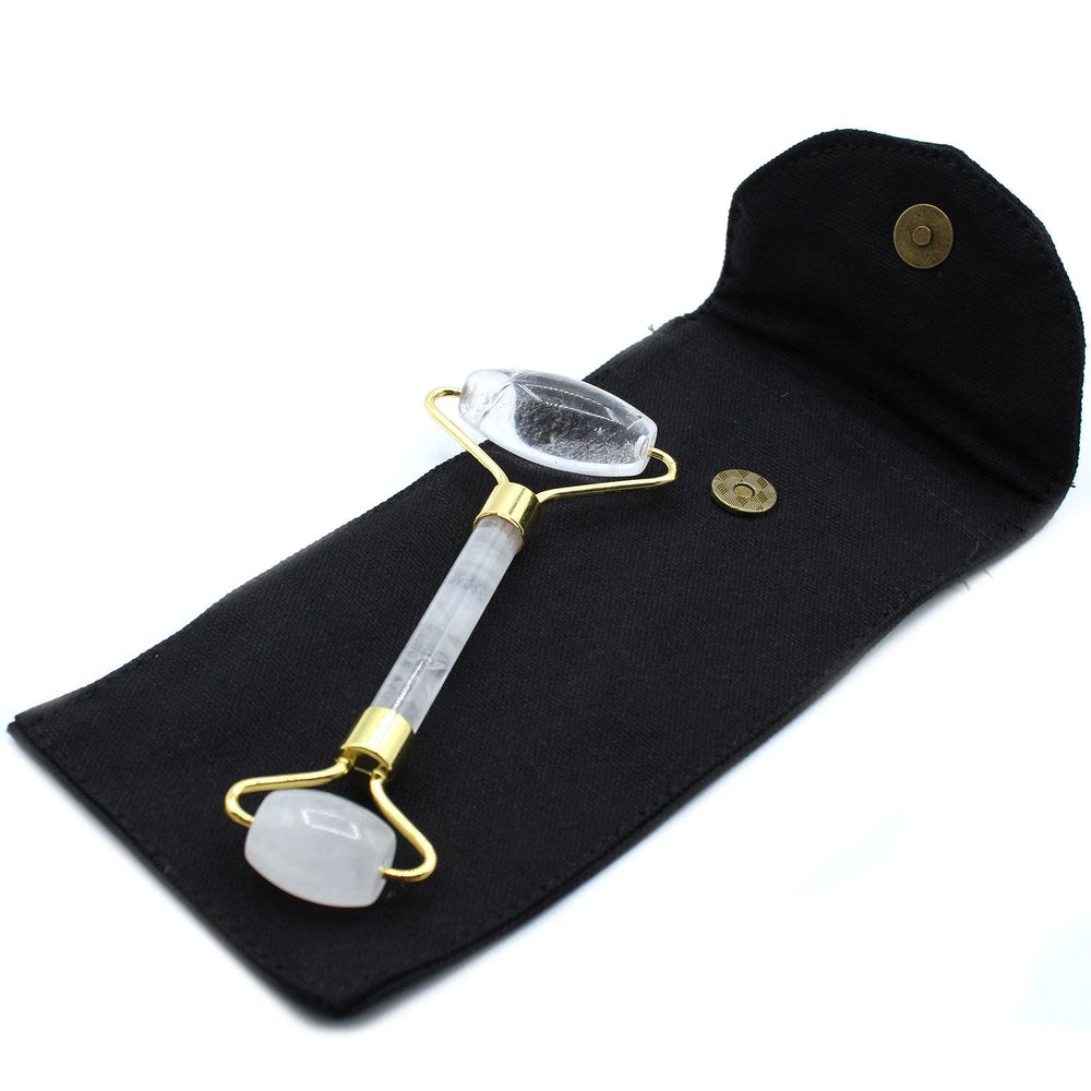 The Gemstone Face Roller is crafted from jade, quartz, sodalite or amethyst for positive energy. Each Gemstone Face Roller comes with a 100% cotton pouch