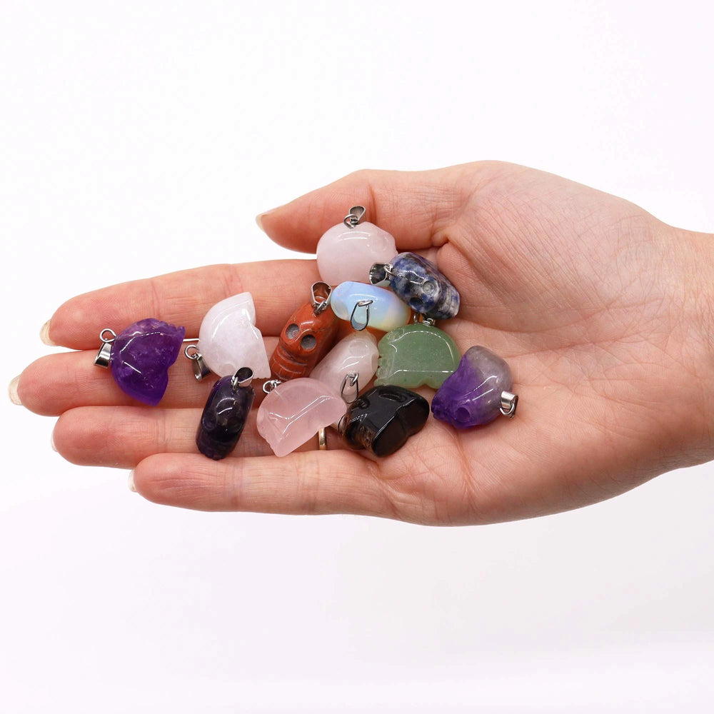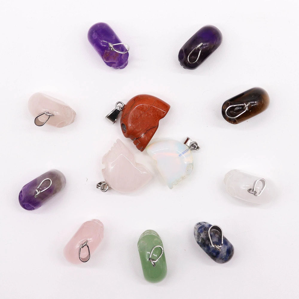 12 x Gemstone Mini Skulls Pendants (12 assorted) 20x15mm