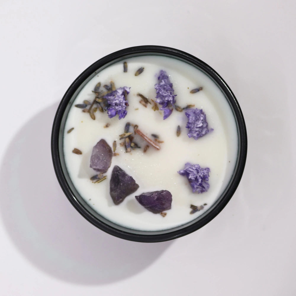 Step into the mystical world with Hop Hare Crystal Magic Flower Candle - The Moon, crafted with Amethyst gemstone and lavender flowers.