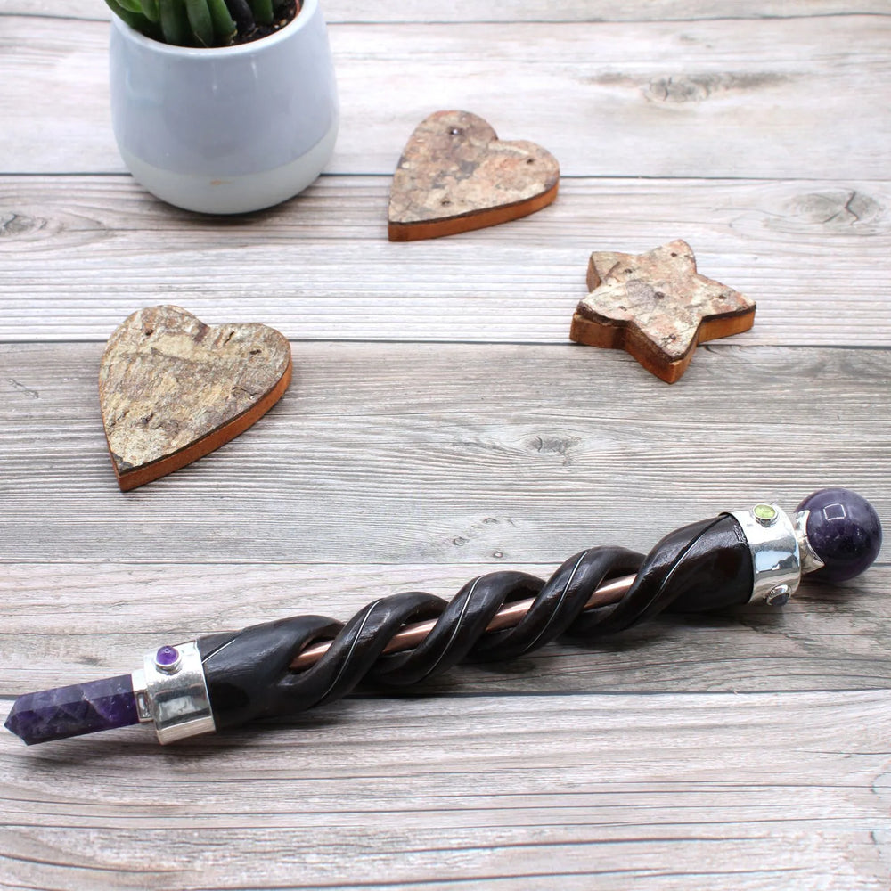 Spiral Carving Healing Wand - Copper Pipe Amethyst