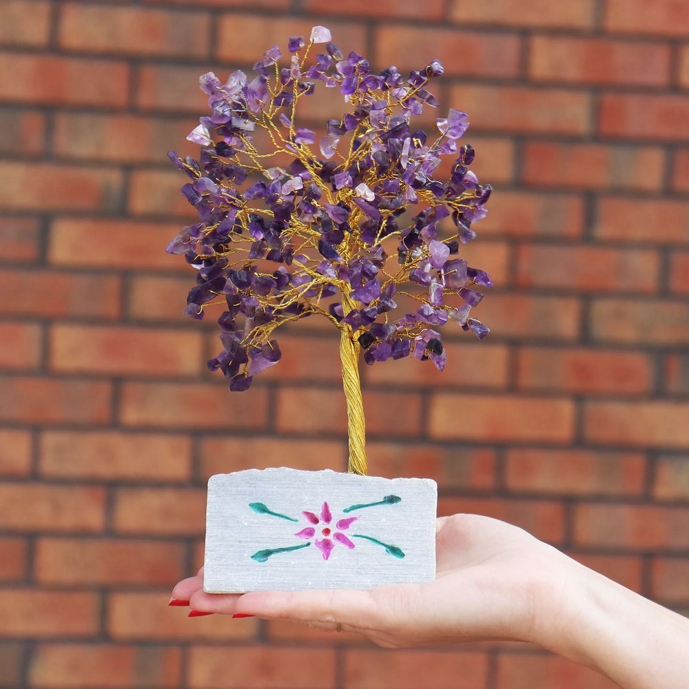 This Indian Gemstone Trees from Ancient Wisdom Dropshipping is handmade from real gemstones and mounted on gemstone rock bases.