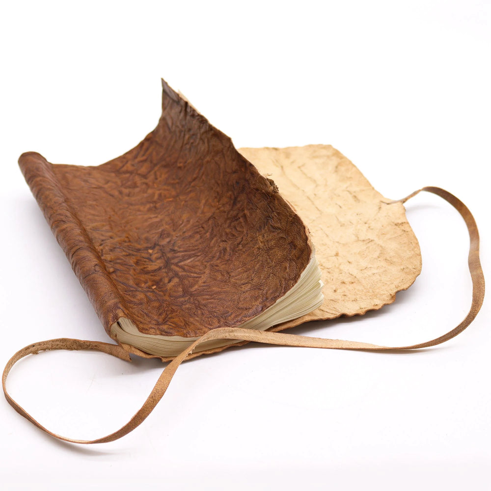 The compact design allows you to roll up the notebook when not in use, safeguarding your precious thoughts and sketches. A leather strap wraps around the notebook, securing it in place and adding an extra layer of protection.