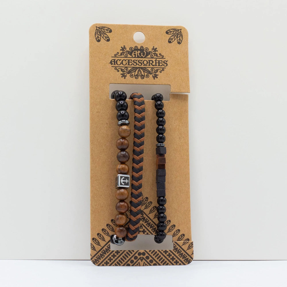 Mens Premium Bracelet Sets - Black & Tans (asst)