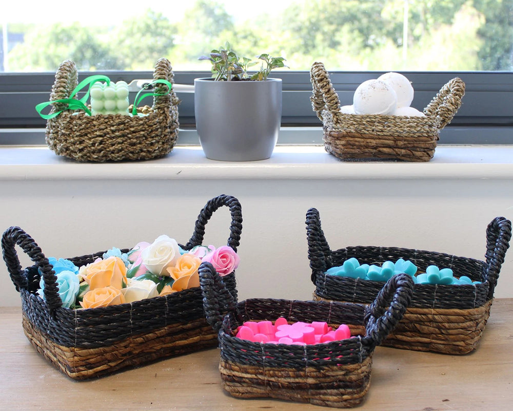 Banana Leaf & Hitam Raffia Square Basket- Set of 3