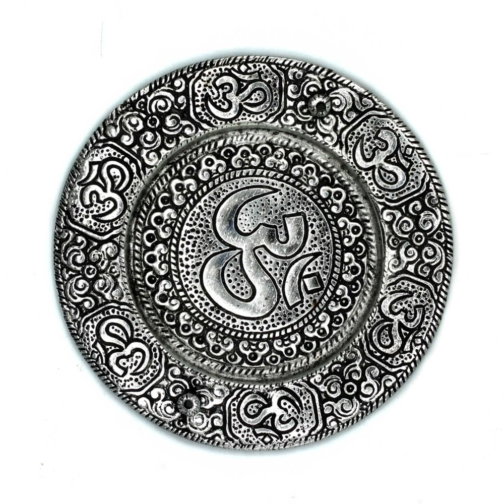 Polished Aluminium Om Round Incense Holder 11cm