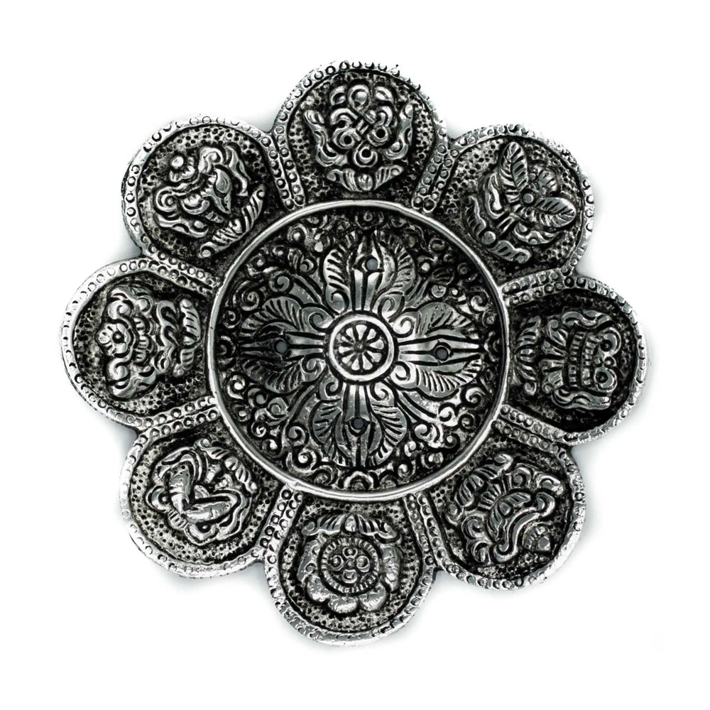 Polished Aluminium Tibetan Symbols Incense Holder 12cm