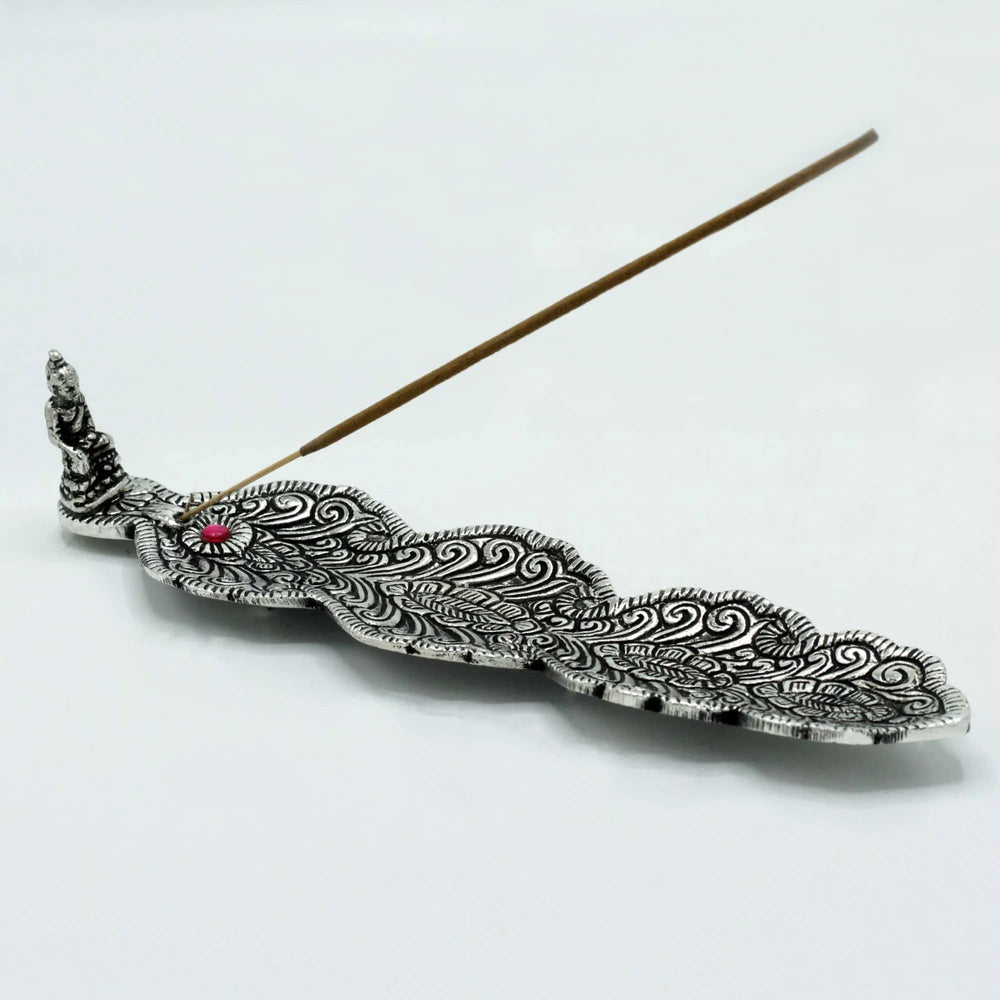 Polished Aluminium Buddha Long Incense Holder 20cm