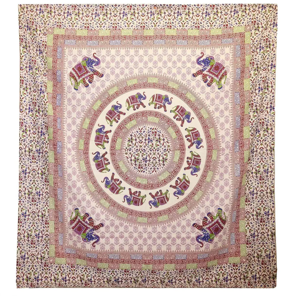 Wall Hanging / Spread - Elephant Mandala - Purple/Blue on Cream