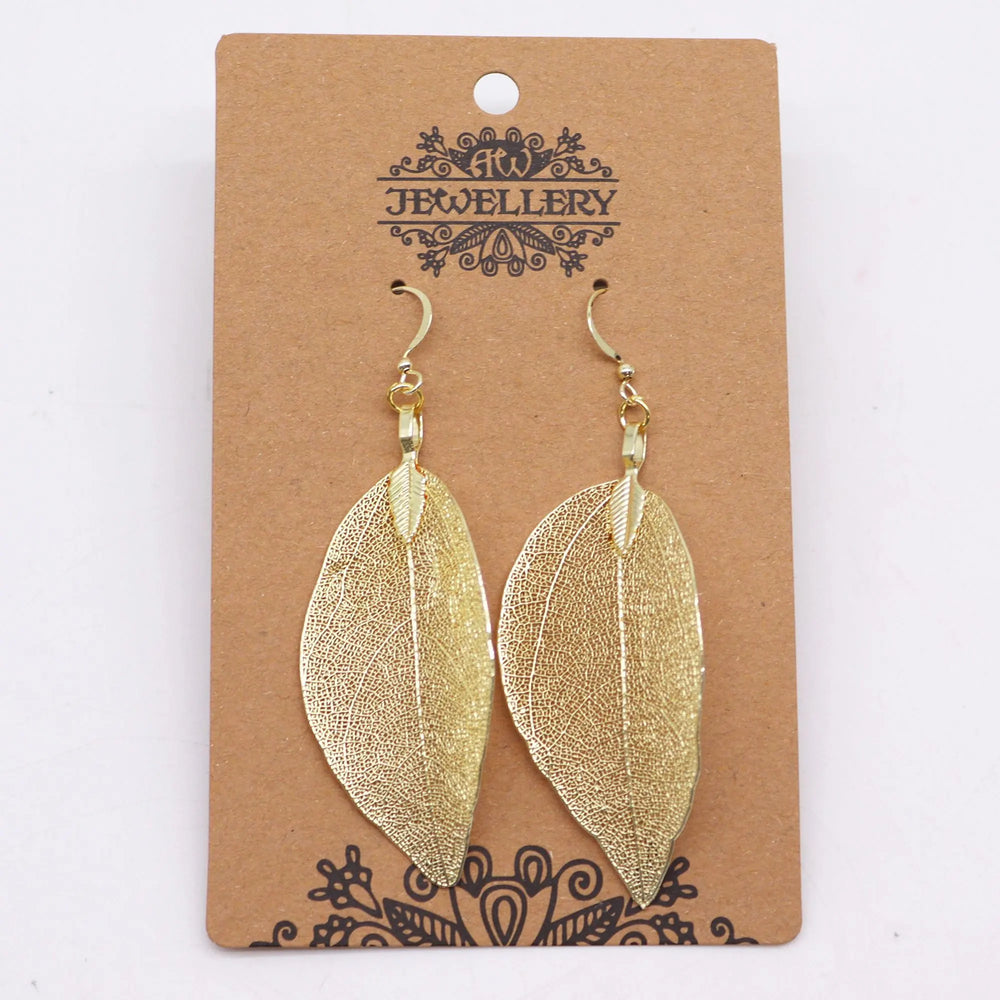 Bravery Leaf Jewellery Earrings in Gold is from Ancient Wisdom Dropshipping and is made with actual real leaves, hand selected and harvested specially leaf by leaf.