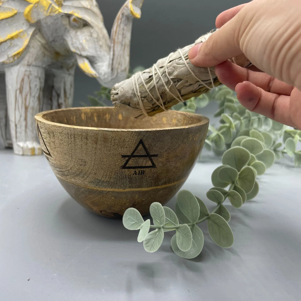 Wooden Smudge and Ritual Offerings Bowl - Four Elements - 11x7cm