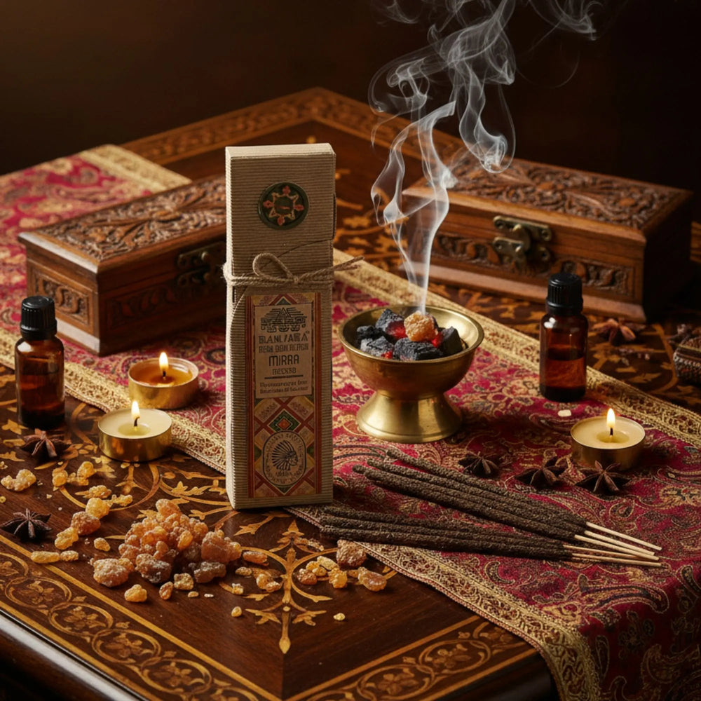 Invite calm and clarity into your space with the sacred aroma of Myrrh. Made in India, these resin incense sticks release a deep, warm fragrance that supports purification, grounding, and spiritual reflection.