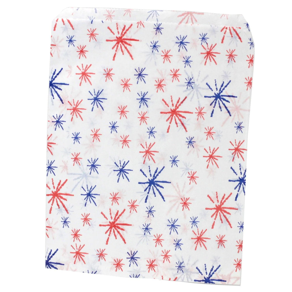 This paper bag with a printed starburst design is perfect for a wide range of small gifts, cosmetics, food and greeting cards.
