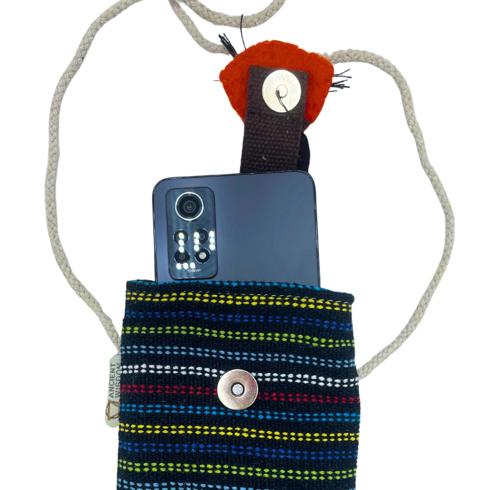Phone Holder Bag Black and Multi - fox decor