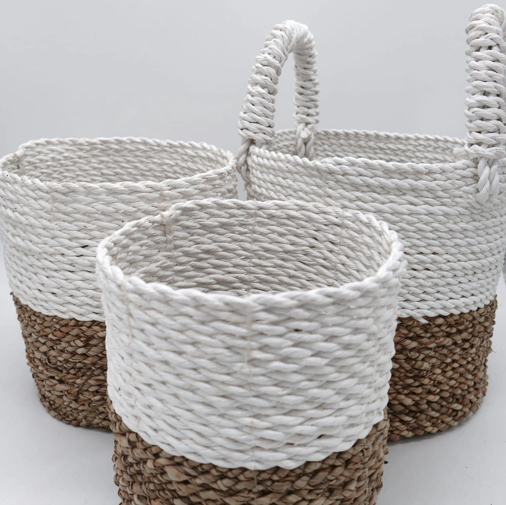 Seagrass Basket Set - Natural / White is perfect for displaying your products, multi-functional baskets are handwoven and add a genuine earthy look to any space.
