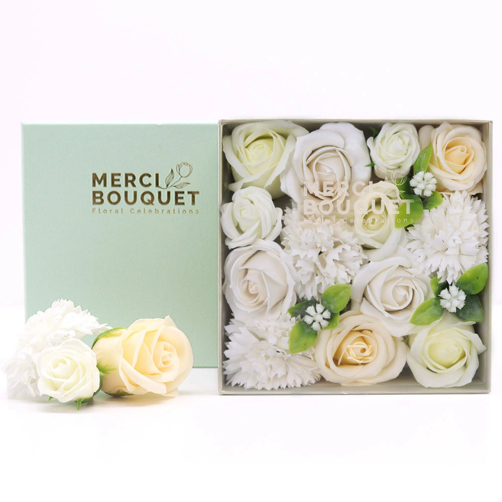 Soap Flower Gift Round Box - Wedding Blessings - White & Ivory