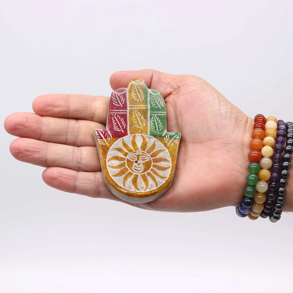 Soapstone Hamsa Incense Holder - Sun Face
