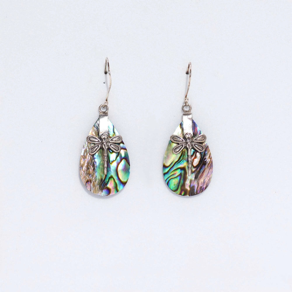 Shell & Silver Earrings - Dragonflies - Abalone, Shelf & Silver Earrings -