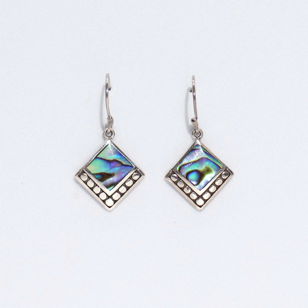 Shell & Silver Earrings - Square Dots- Abalone
