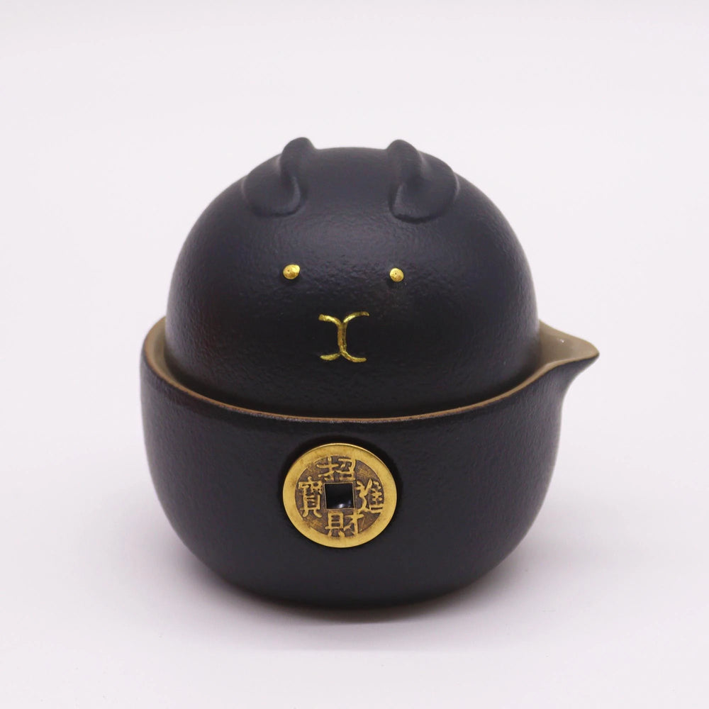 Money Cat Teapot Set - Two Cups - Travel Pack - Black