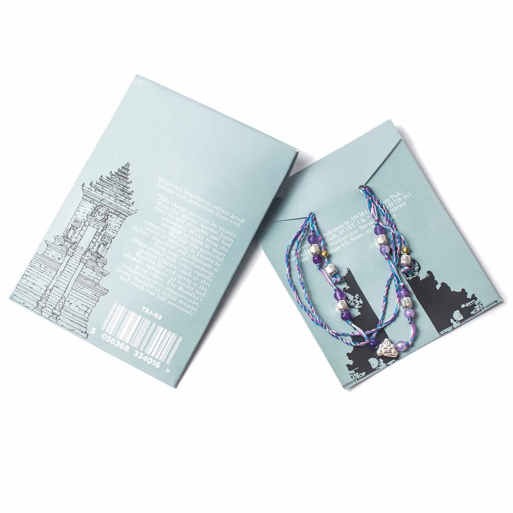 Invite blessings of protection and fortune with captivating Temple String Bracelet - Protection & Fortune. Handcrafted in Indonesia, this bracelet embodies the ancient wisdom of safeguarding energies and attracting abundance. Adorned with symbolic silver charm and beads, it serves as a talisman for prosperity and well-being.