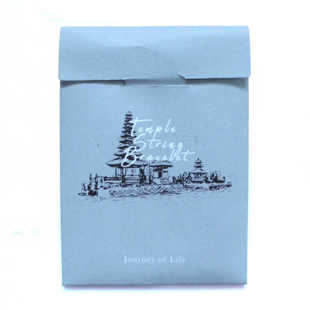 Each Temple String Bracelet - Journey of Life is packed in a blue paper bag with a short description of its intention: