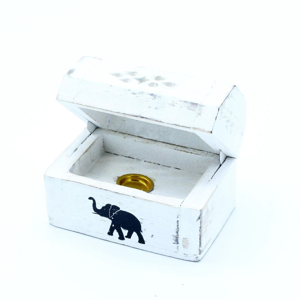 White Washed Incense Holder - Cone Smoke Box 8 cm