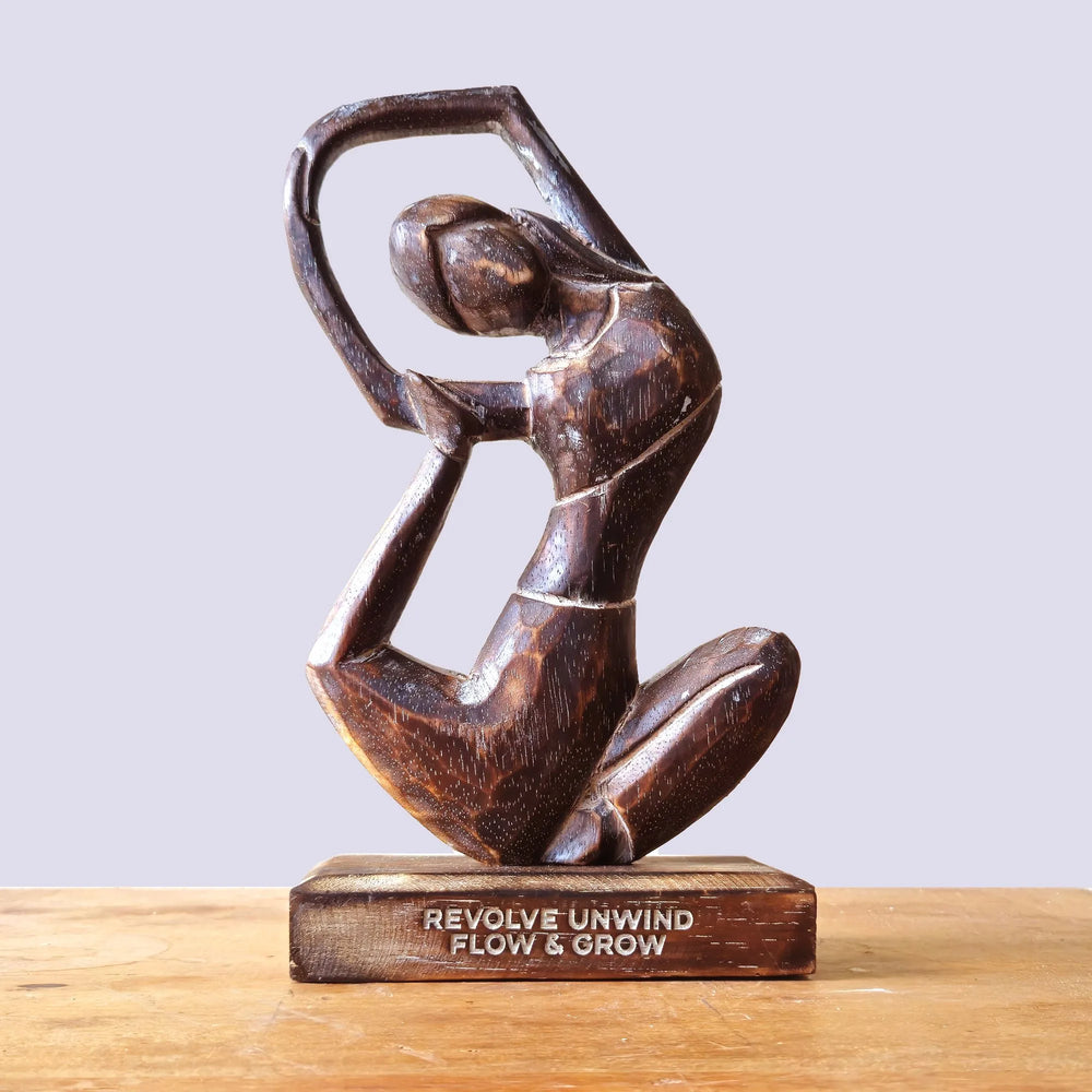 Wooden Yoga Lady - Antique - Revolved Pose - "Revolve Unwind - Flow & Grow"
