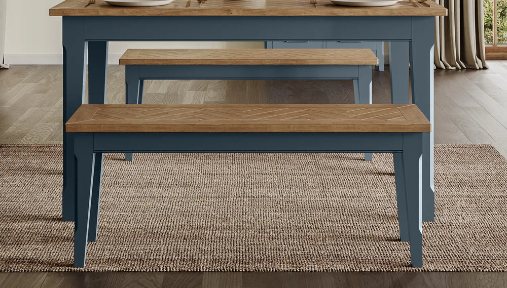 Signature Blue Dining Bench (130) is backordered and will ship as soon as it is back in stock.