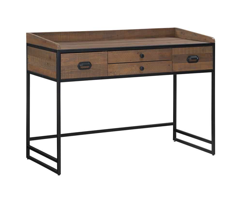 - Features a splashback, three standard drawers and a drawer fitted with a lockable 'drop down' front incase you wish to use it as a keyboard drawer