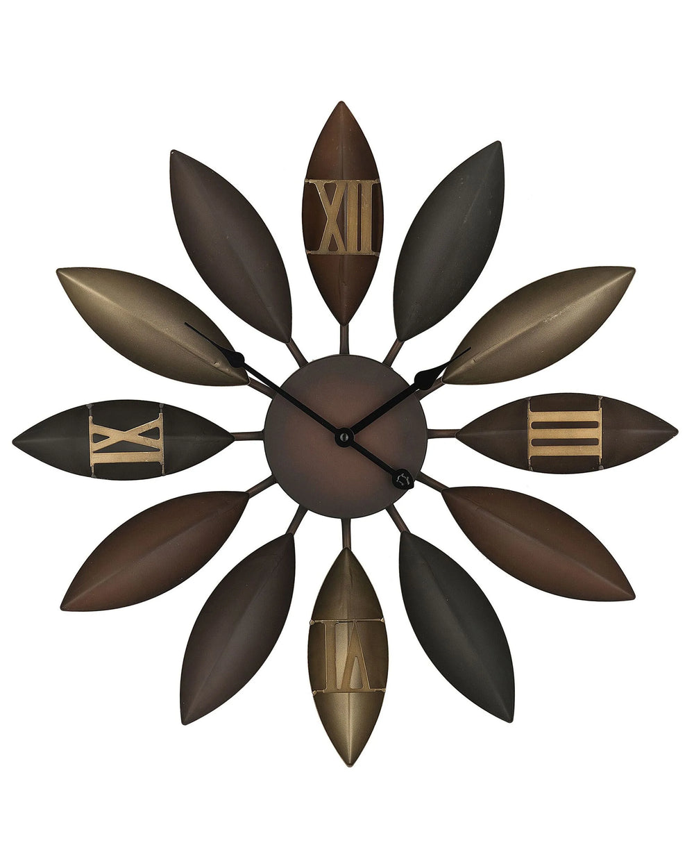 Wall Clock Brown Iron Frame flower Shape Design Roman Numerals Round 55 cm Beliani